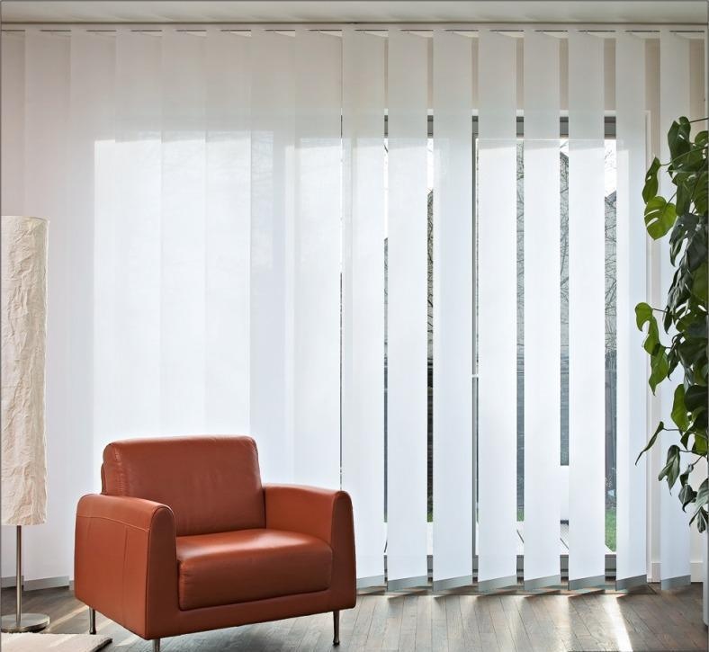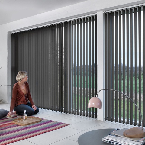 垂直帘,vertical blinds,因叶片一片片垂直悬挂于上轨而得名,可左右自由调光达到遮阳目的。幽雅,大方,线条明快。根据材料的不同可以分为:PVC垂直帘、纤维面料垂直帘、铝合金垂直帘和竹木垂直帘。根据操作方式不同分为:手动垂直帘、电动垂直帘。根据外观可分为:直路垂直帘、弯路轨垂直帘。