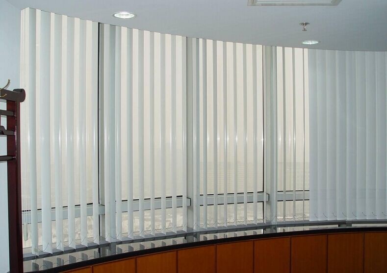 PVC垂直帘:整齐,简洁,优雅,大方。帘片表面光洁度良好,具有隔音、隔热、防潮、防紫外线等功能。易于清洁、永不褪色。集美观大方与实用性于一体。有平面、弧形、条纹、波纹、印花及双面压纹等多种款式。