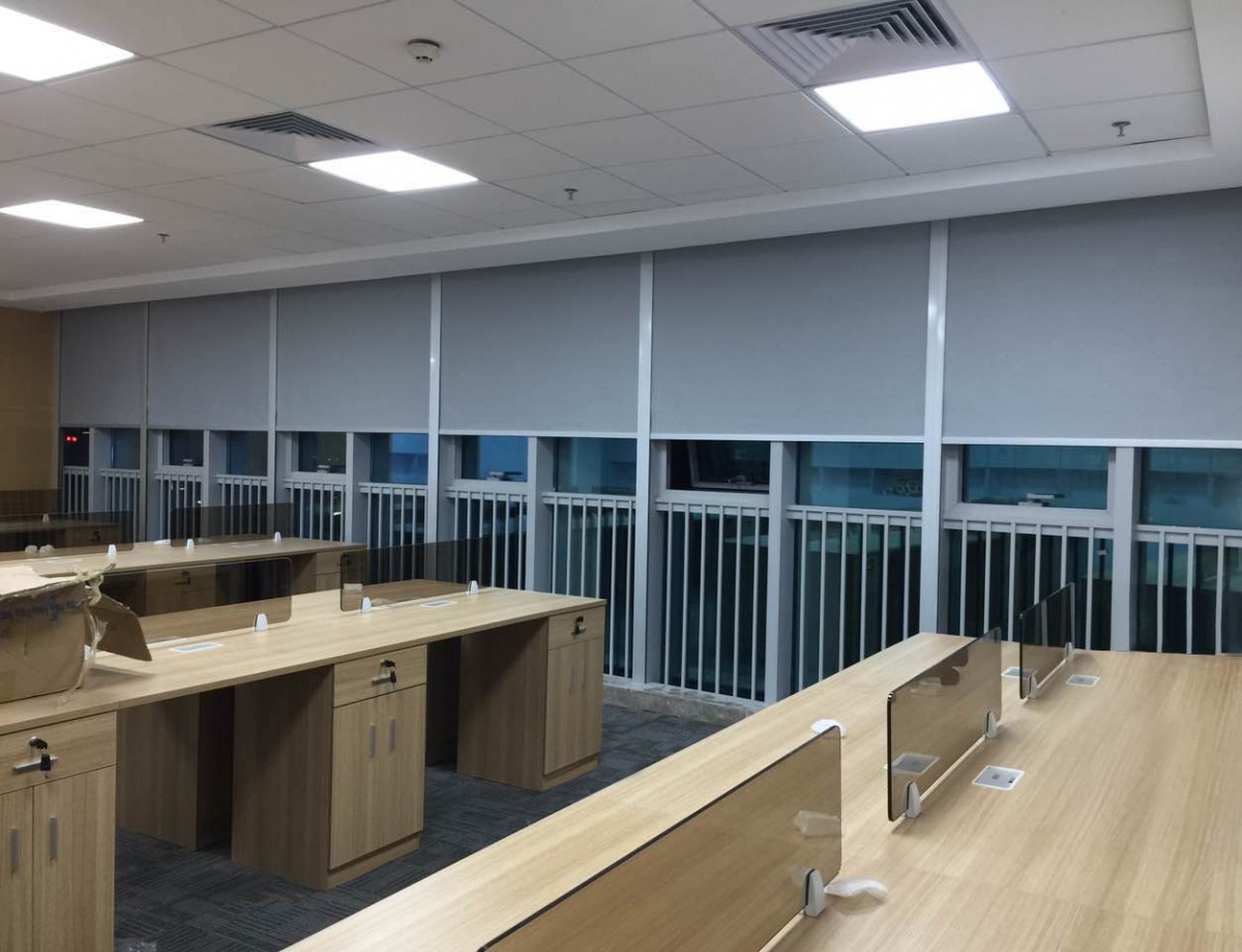 夏季可遮挡阳光,降低空调负荷,冬季可调节视觉舒适度。如使用无线遥控或楼宇智能控制,则可实现智能控制方式,满足用户高品质要求。电动卷帘可采用“一拖多”的形式,只要增加平衡器或万向节,使一个电机同时拖动多副面料即可。电机运转时,多块面料一起做升降运动,以实现更好的遮光、遮阳效果。