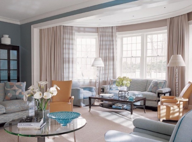 客厅是我们居家的中心区域,可根据不同的装饰风格,选择相对应的窗帘款式、颜色和花型。深色的窗帘显得庄重大方;浅色调、透光性强的薄窗帘布料为好,能够营造出一种庄重简洁、大方明亮的视觉效果。
