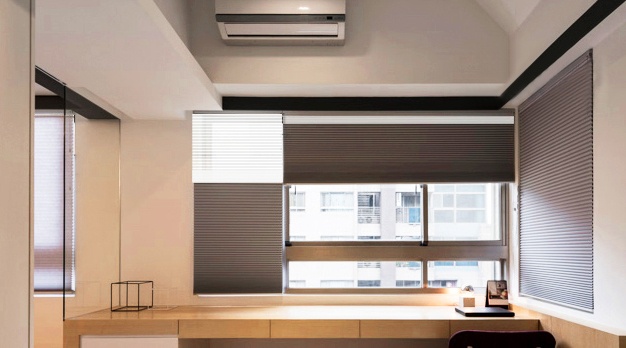 如果窗户下放东西,比如书架、沙发等物件,可以选择百叶窗或者卷帘,效果也非常不错。
