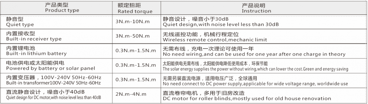 推荐使用电机OPTIONAL MOTORS