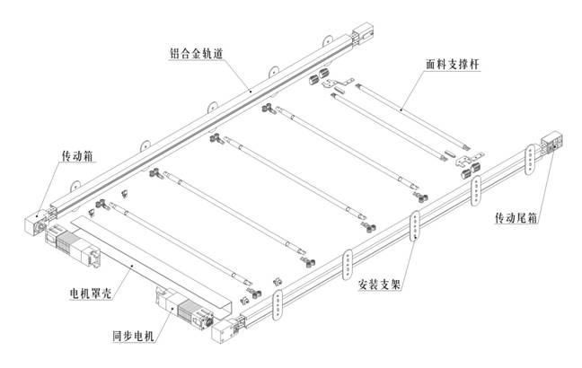 1.系统主要由传动机构、面料和控制器三部分组成;