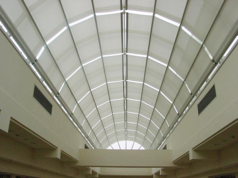 将透明玻璃应用到现代建筑上已成为一种潮流。但随之带来了玻璃采光顶如何遮阳隔热问题。为了解决这一问题,电动遮阳天棚帘应运而生,并拥有多种不同产品类型。