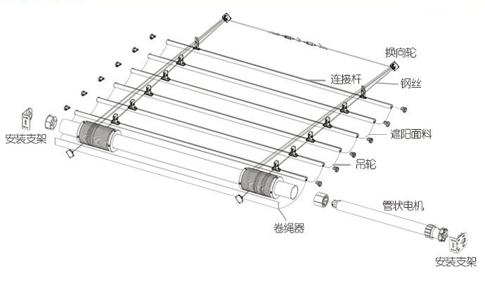 2.面料需具较大的抗拉强度,一般选用玻璃纤维+PVC阳光面料或其它高强度的纤维面料;