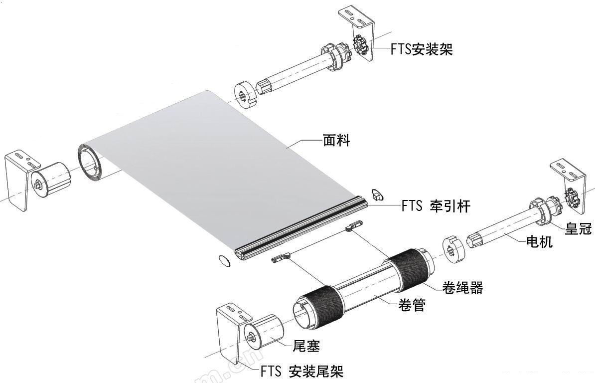 1.每套系统使用两合同型号的FTS专用管状电机和一个电子控制盒;