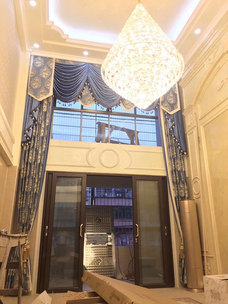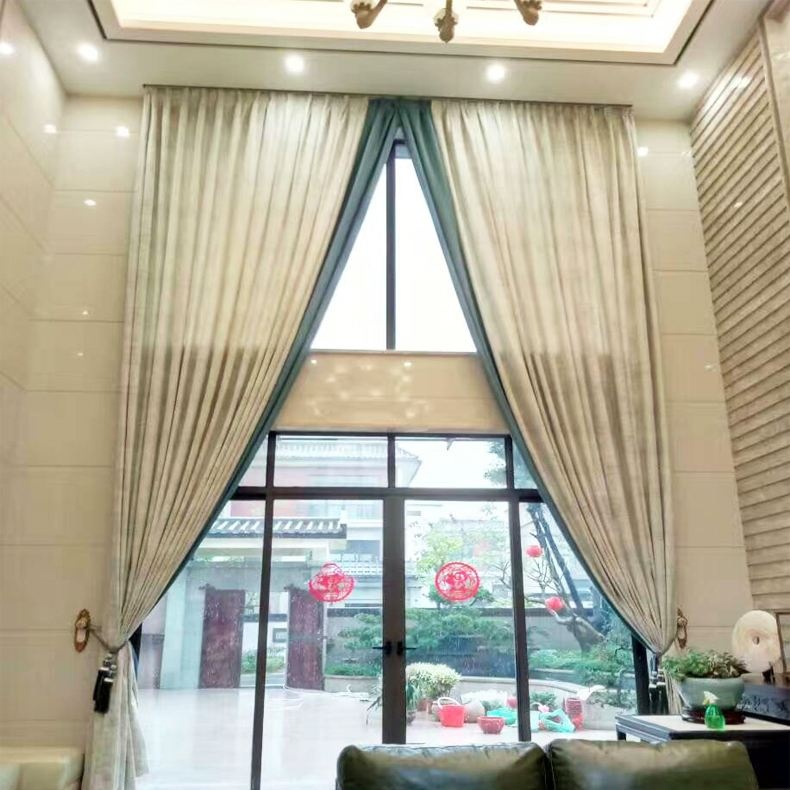 别墅、大厅、舞台、复式建筑内的超高大型窗户配合开合帘,水波帘,罗马帘尽显高贵优雅,配合一套升降系统,拆洗更安全方便,只需轻松按动遥控器即解决了窗帘或会标更新、拆洗、卫生整理时遇到的难题(架体麻烦,拆卸危险),是办公、酒店、家庭、别墅、学校和各种商业建筑等场所的理想选择。