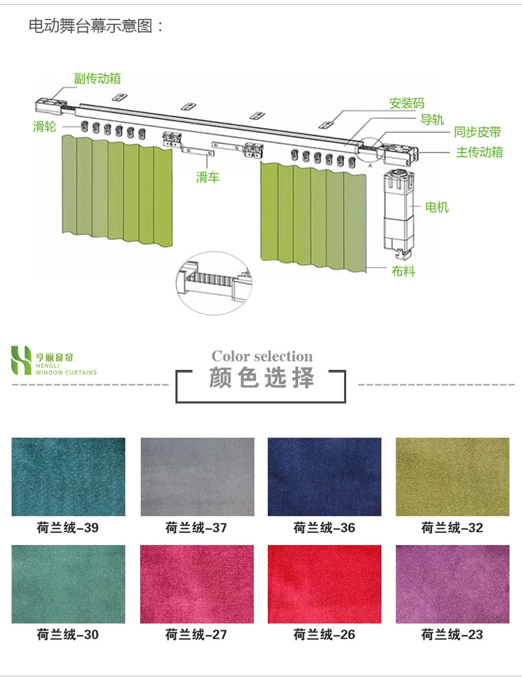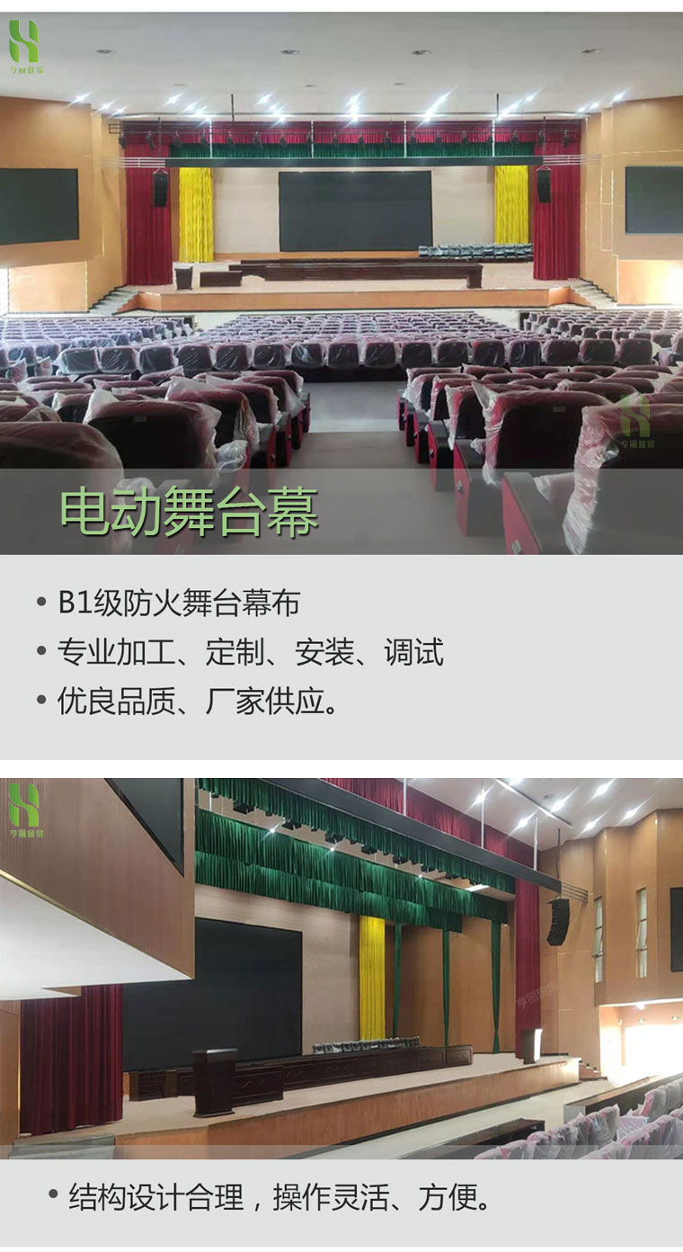 Electric stage opening and closing curtains are curtains required for the opening or closing of larger stages. The conventional types are electric stage opening and closing curtains, which are divided into two types: ordinary curtains and speed regulating curtains;
