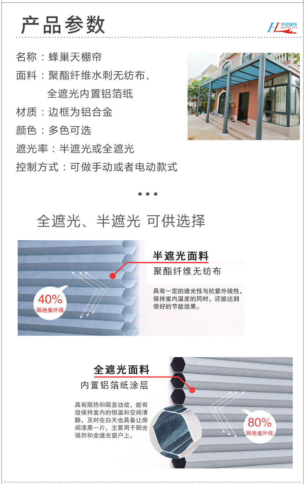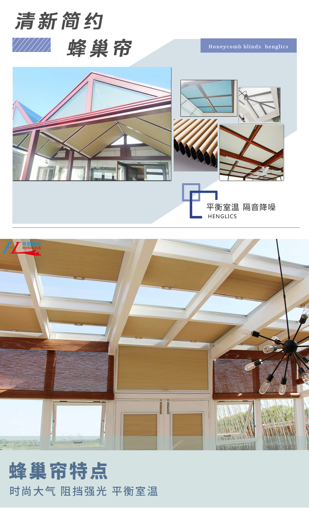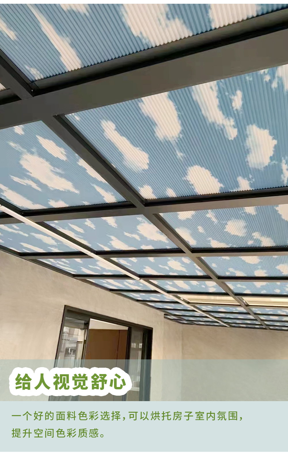 Honeycomb curtain is a minimalist style curtain for indoor decoration. The design of pleated curtain is derived from the combination window decoration developed to meet the different lighting needs of day and night. The folds that hang down when pulled from top to bottom, like the water surface blown by a gentle breeze, create ripples and elegant lines with a strong sense of three dimensionality and dynamic beauty;