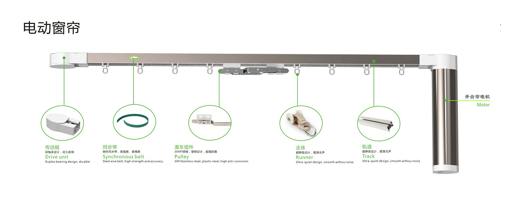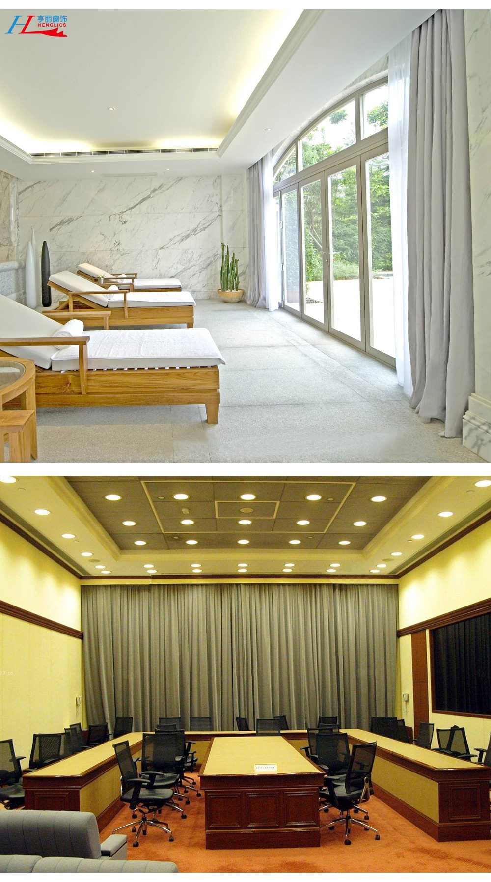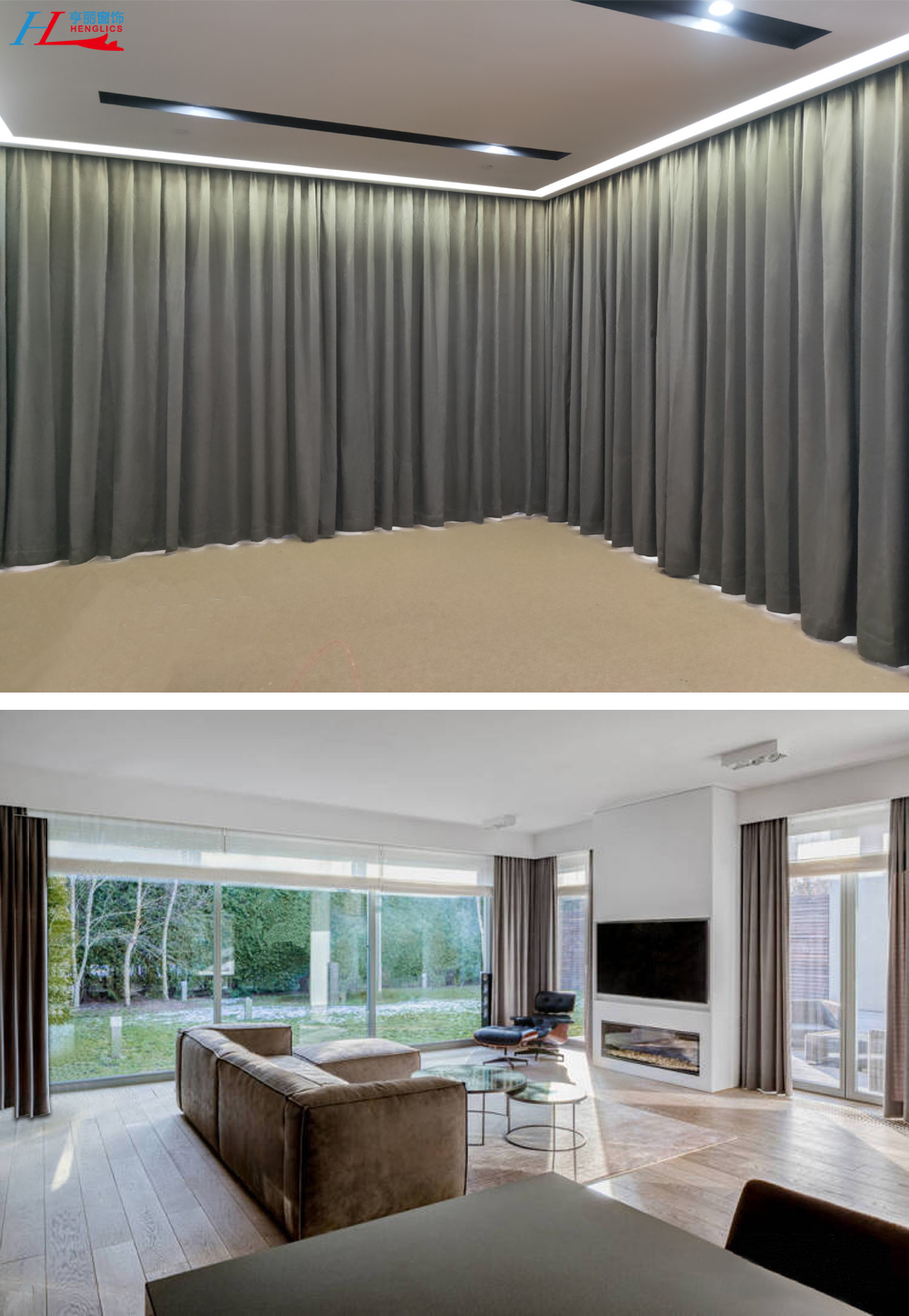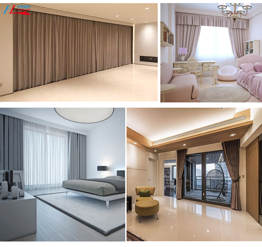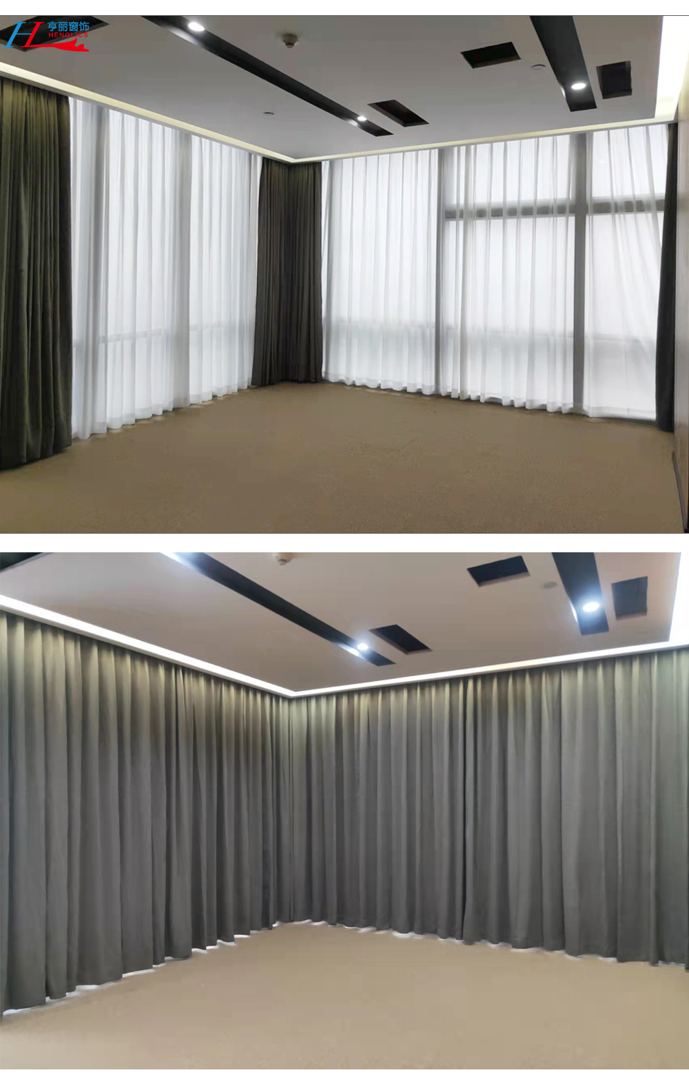 Electric fabric curtain is an upgraded product of manual fabric curtain. The opening and closing curtains showcase the spacious, bright, noble and elegant characteristics of the interior; Curved opening and closing curtains, unique curtains reflect the owner's elegance and personality. The opening and closing curtains are beautiful and atmospheric, and with the electric device and remote control, they can be controlled with just one finger, enjoying the fun of technology. They are a fashionable and modern choice for hotels, conference halls, business places, and homes.