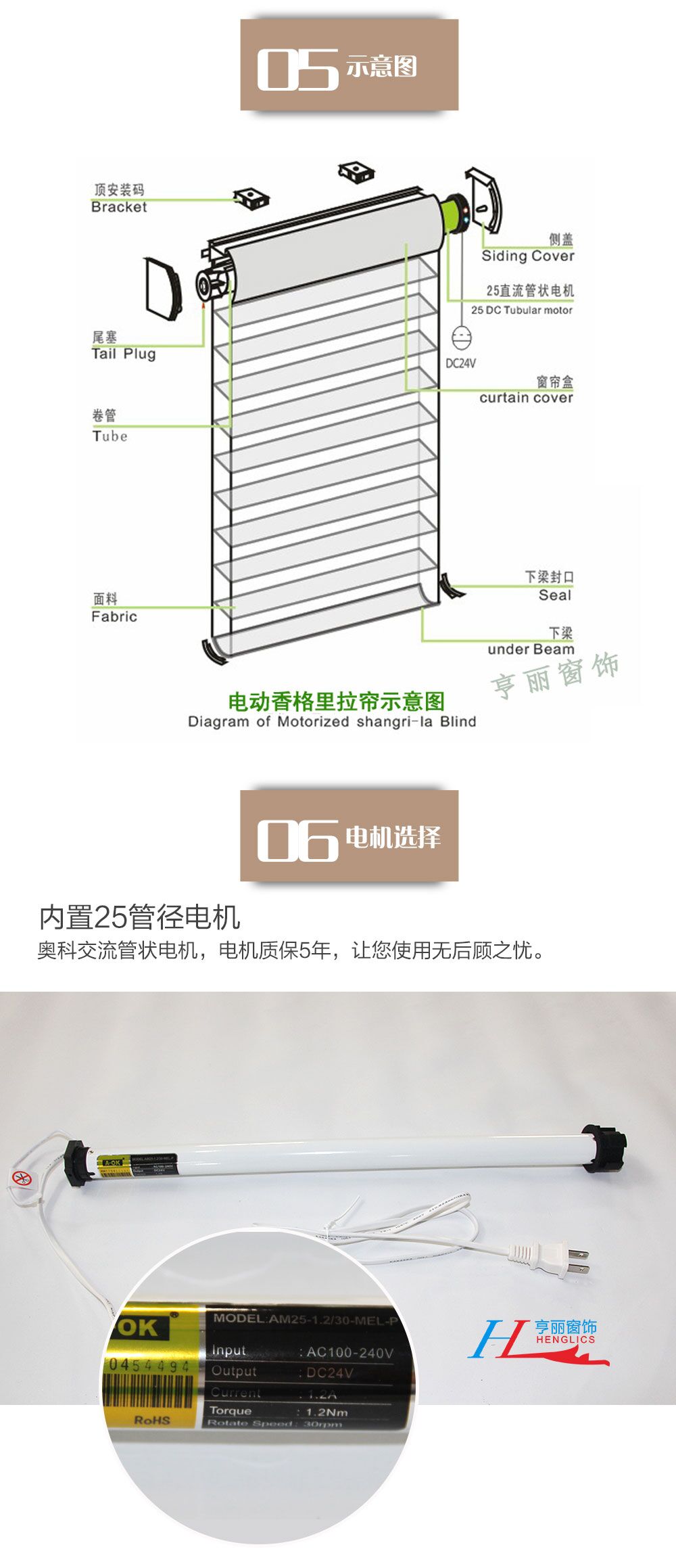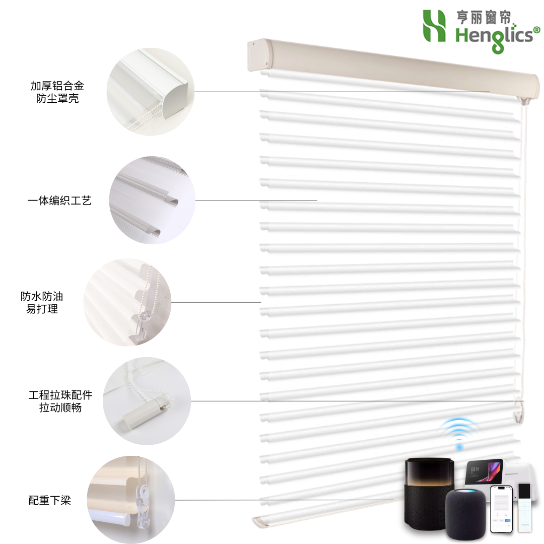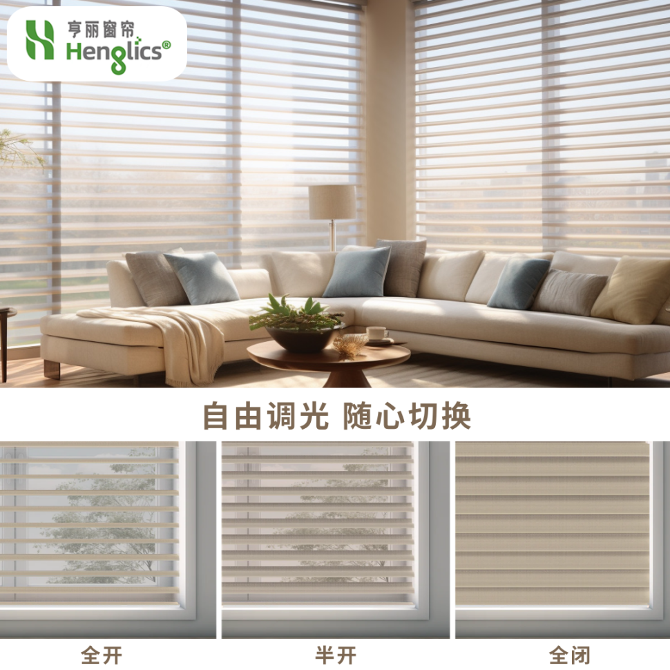 亨丽可以做到:手动香格里拉帘、电动香格里拉帘。