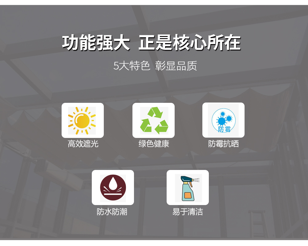 3、配置各种不同的面料可达到不同的遮阳装饰效果。