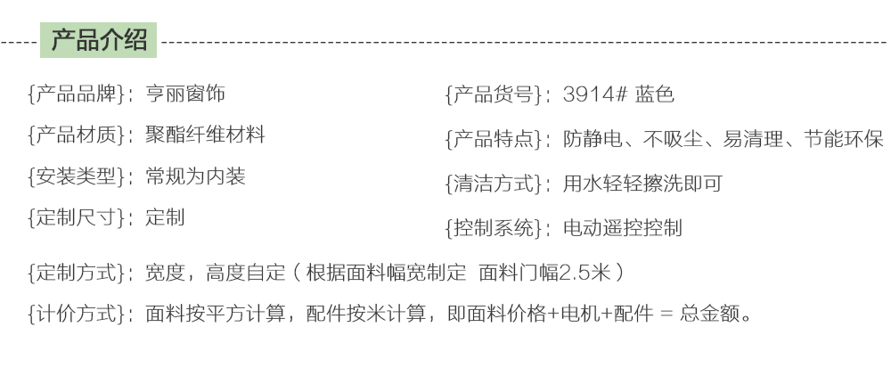 1、采用220V/50HZ交流异步电机,齿条式皮带传动,可适用于平面、弧形、倾斜安装面的天棚帘。