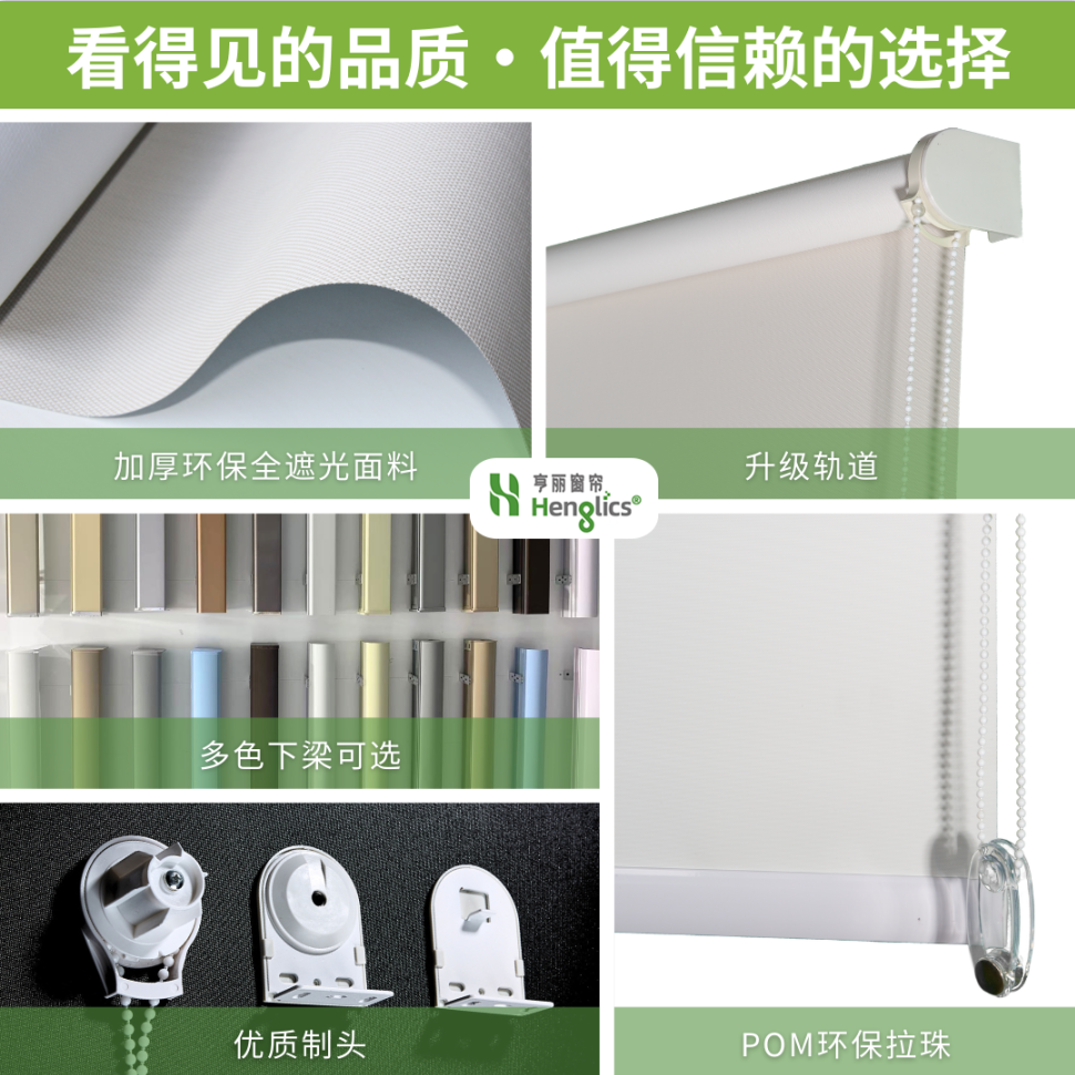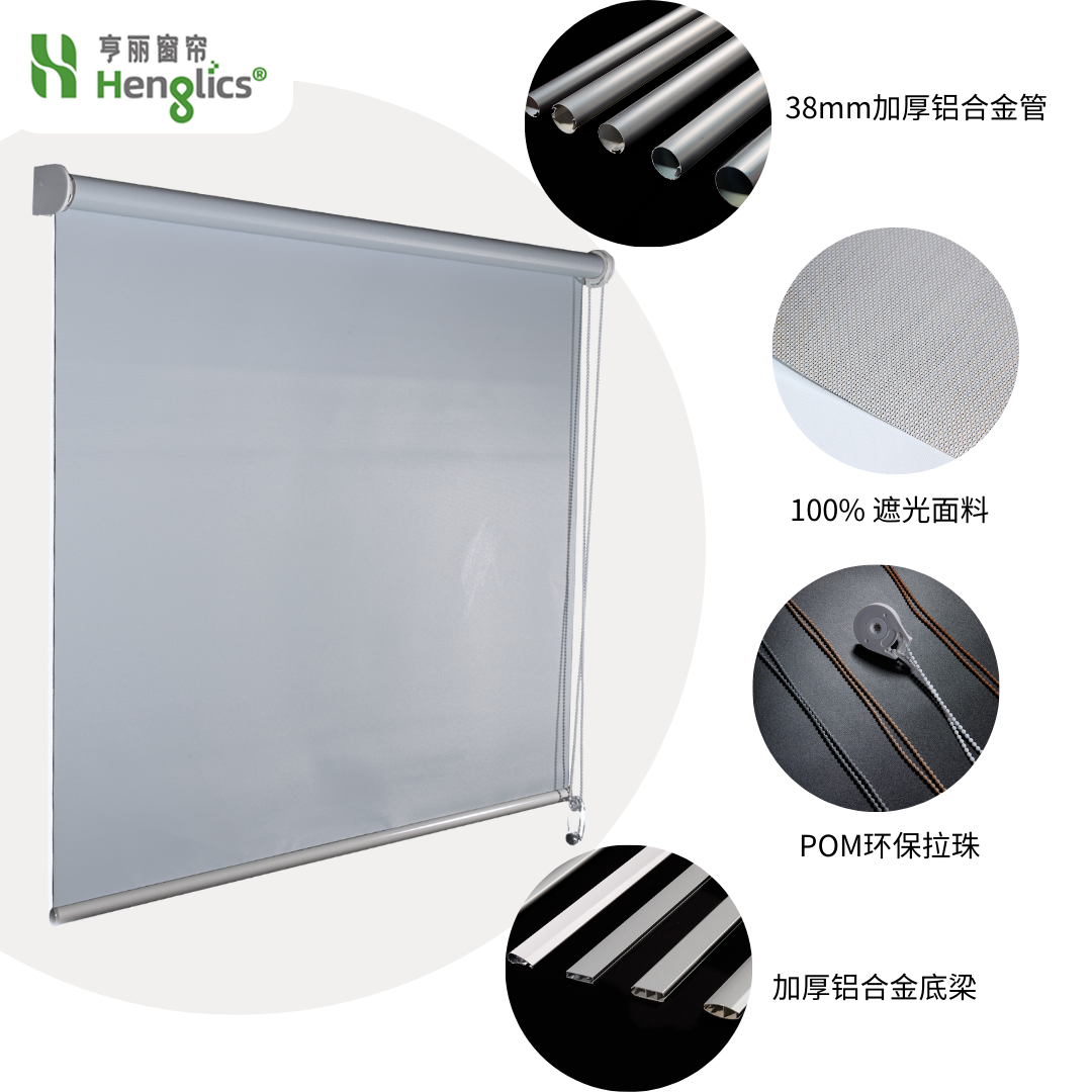 全遮光卷帘,强效遮光,静谧舒适。 遮光隔热,保护隐私,睡眠更安心。 简约平整,家用卧室、办公室都适用。 可配电动,一键升降,省心又实用。