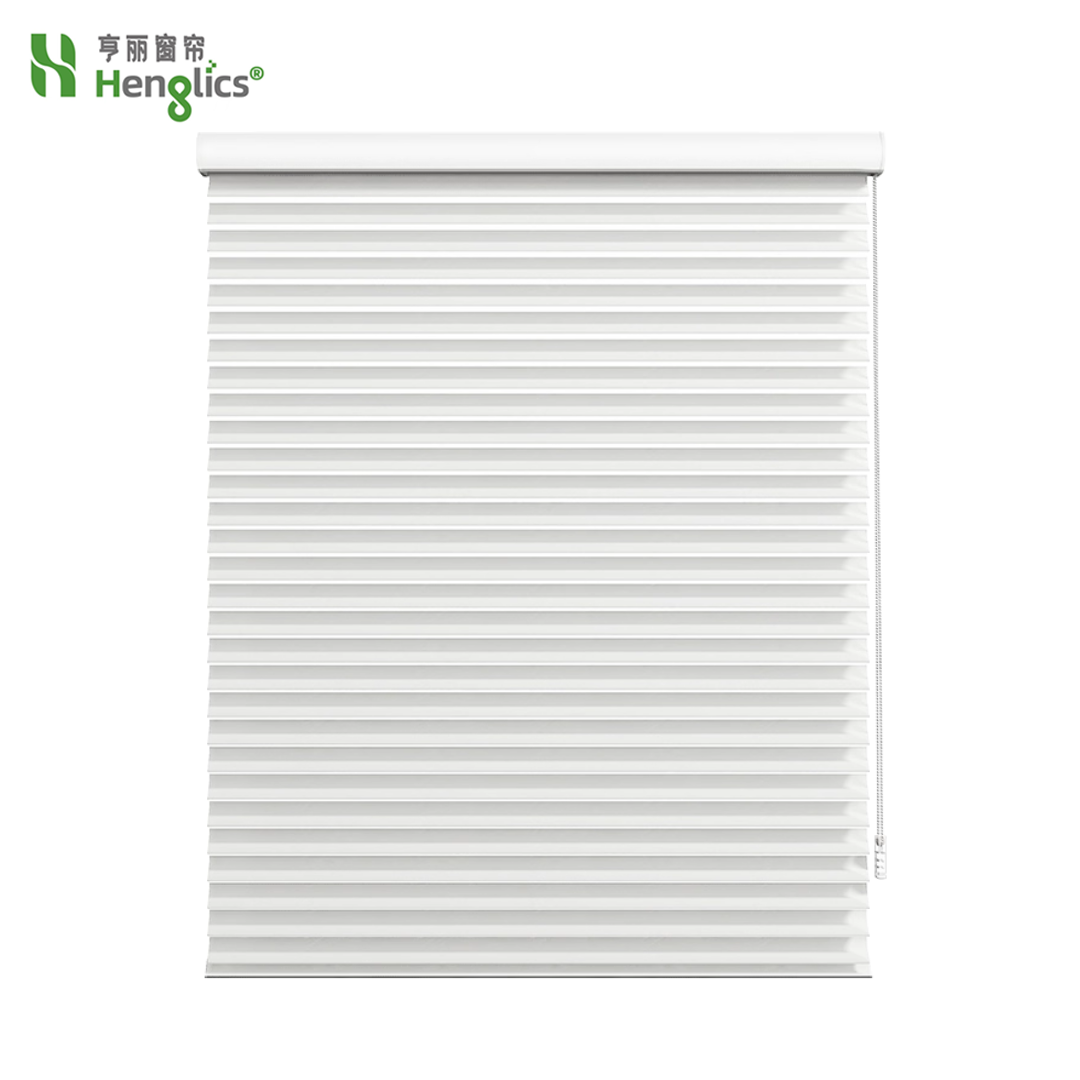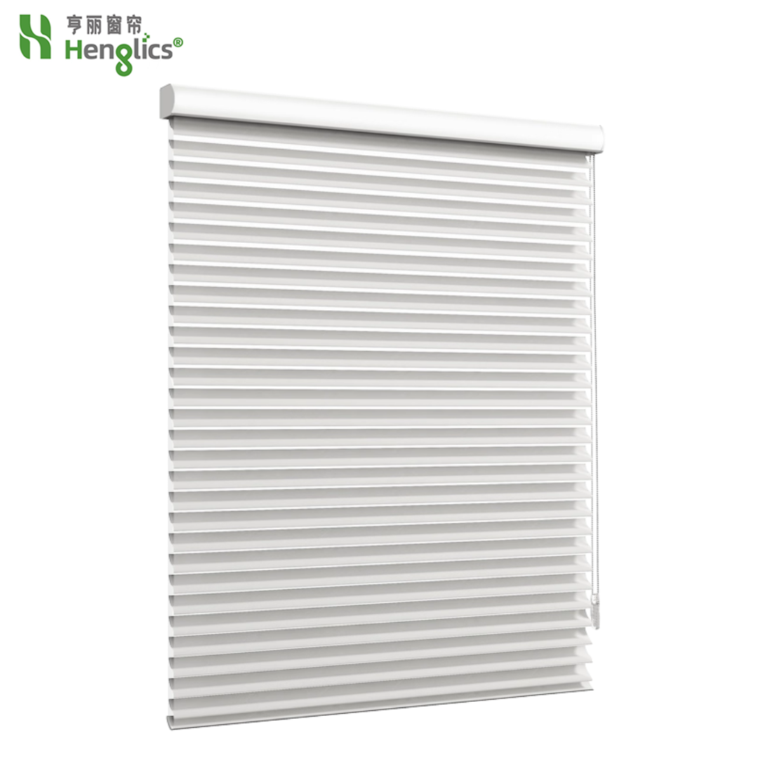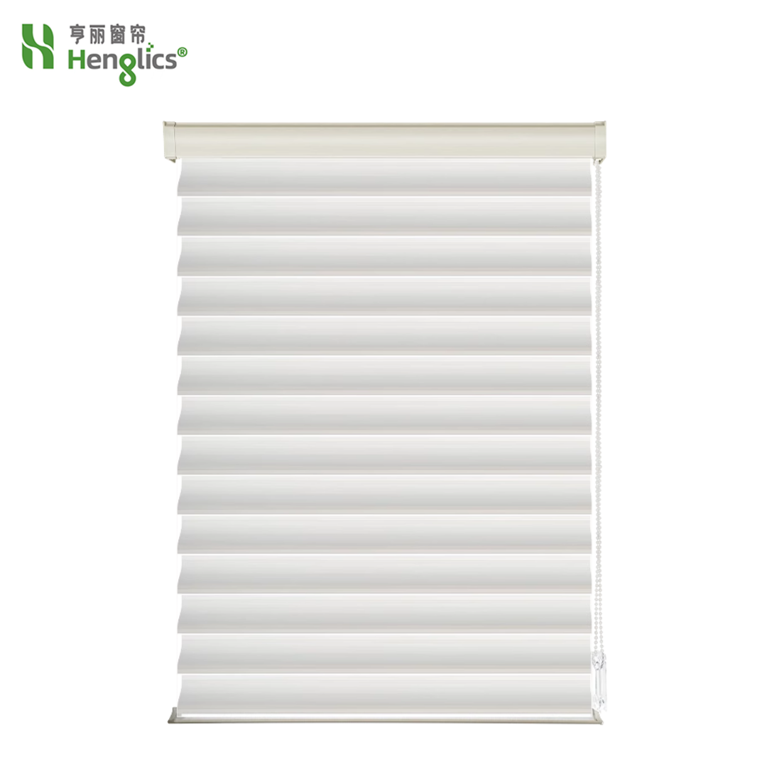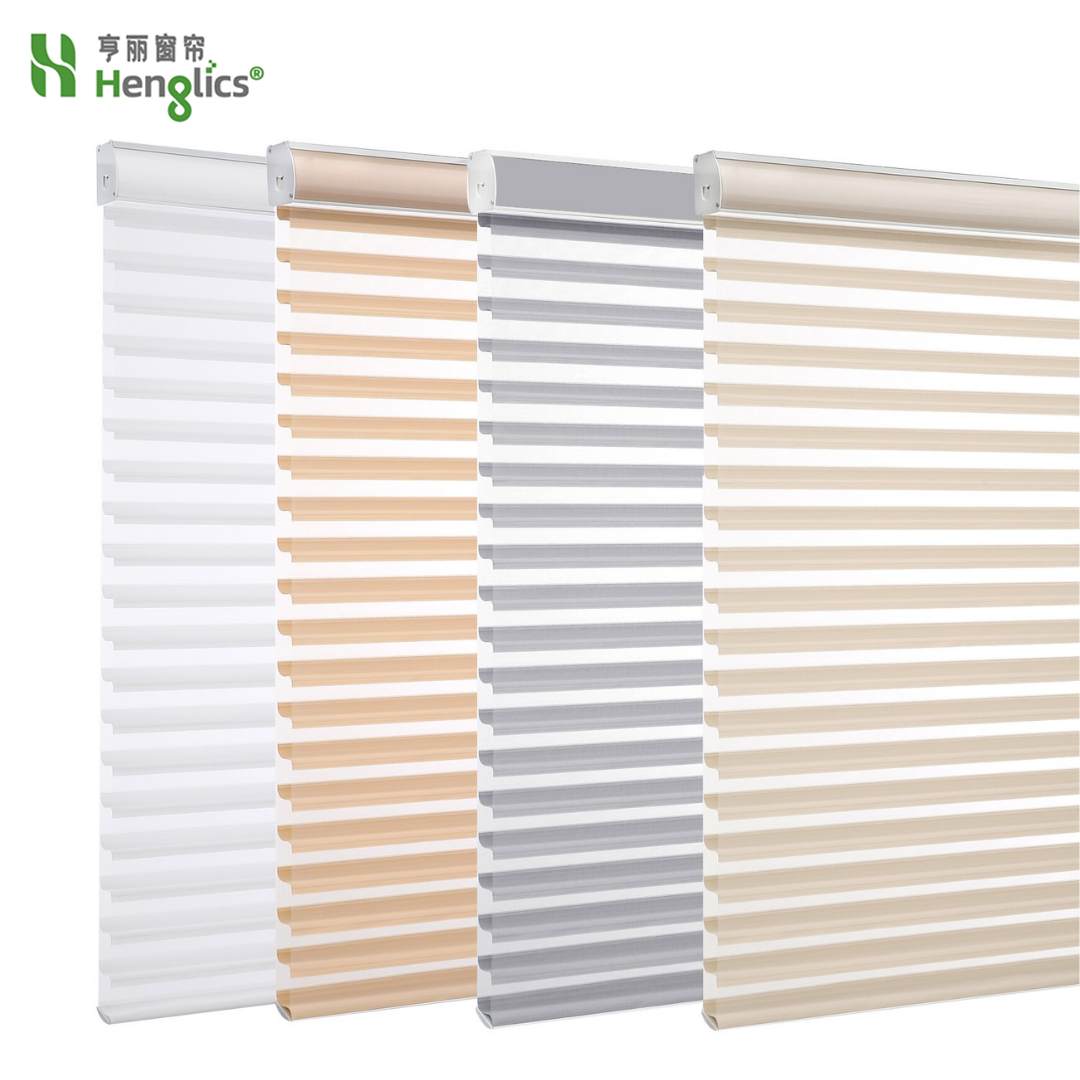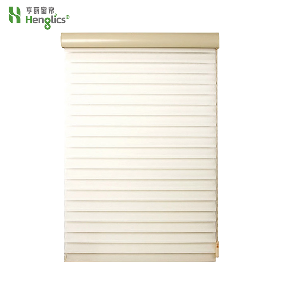 香格里拉帘是一种柔合了布帘、窗纱、百叶帘、卷帘于一身的崭新设计,具有拉帘纱幔的朦胧效果。取材于布、纱的香格里拉帘质地独特、外形美观,在两层轻柔的织物中连接水平面料可使室内保持柔和的光线。
