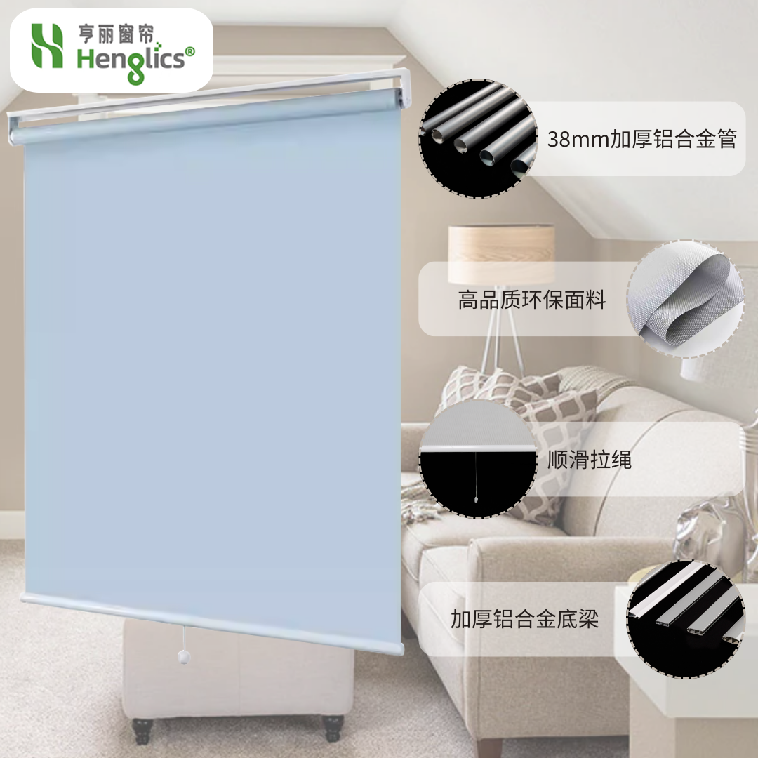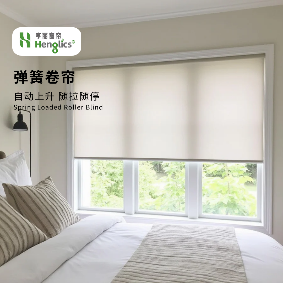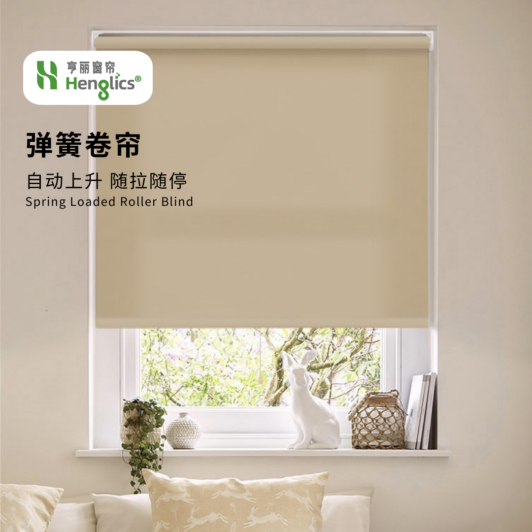 半自动弹簧卷帘,随拉随停,轻拉自动慢慢弹回,收起也方便;颜色多样,有半遮光和全遮光效果,适用于办公或者居家环境。
